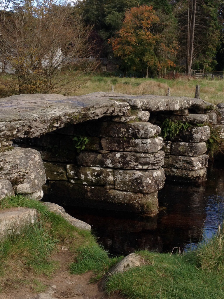 We strolled about on the moor for an hour or so, enjoying the fresh air, the random stone circle we stumbled across, the cattle, the wide open space… Then we headed for the hamlet of Postbridge, which has a 700 year old bridge across the river Dart.