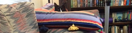 I think she may have adopted a horse the more I get a look at him through the cat door of the room she’s sequestered me in. She says it’s for my comfort. And for me and the beast to “get used to each other.” As if. The woman has quite the imagination. Then again, she is a writer so I can’t really come down too hard on her for her faulty thinking.