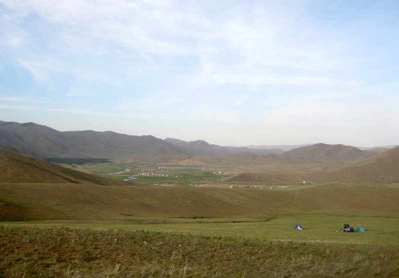 It was a bit uncomfortable, because they’d left Burmaa without a phone and we were waiting for at least half an hour, probably longer. They eventually turned up in the car at around 7 or 8pm, having had their own showers back at Nalaikh. Fortunately our current campsite was nearby. It’s on the side of a hill overlooking the Tuul River, which winds its way through the steps towards UB.
