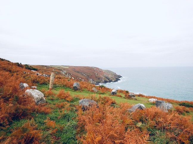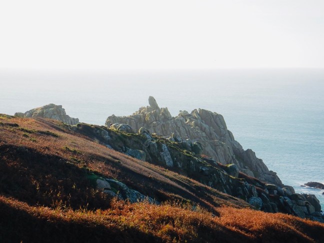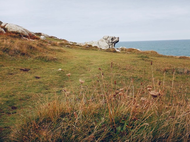 It was yet again beautiful walking on leaving Porthcurno, with views across fields of the Logan Rock, which I elected not to visit. (By this stage of the walk I wasn’t taking many diversions.)
