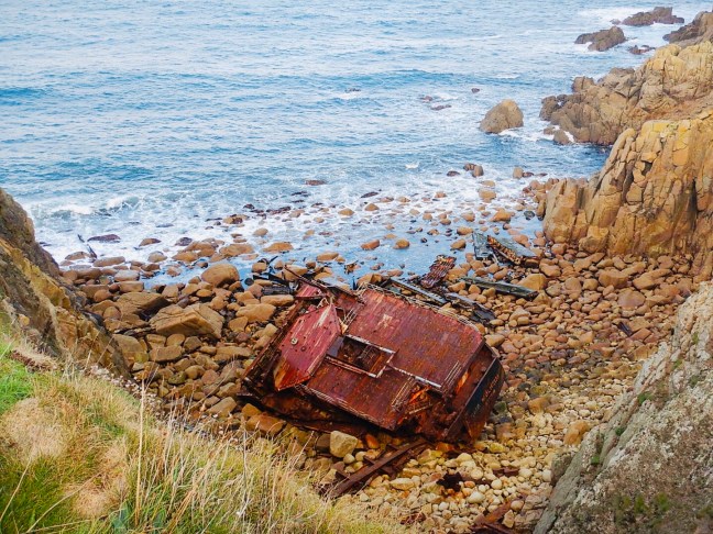 Soon after leaving Sennen Cove (where I grabbed a couple of geocaches), I stopped to look at the cliff top Maen Castle, which overlooked the fascinating wreck of the RMS Mühlheim (2003). There was a geocache here too.