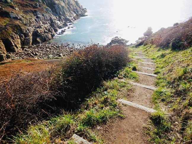 Onwards then for another hour or so to Porthcurno,which is famous for its open air Minack Theatre built into the cliff. You can’t see it from the the path, unfortunately, so I missed this too.