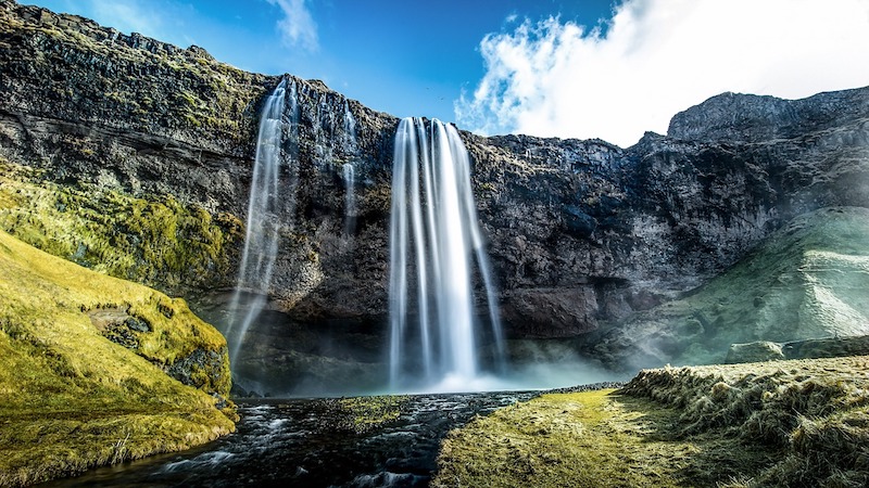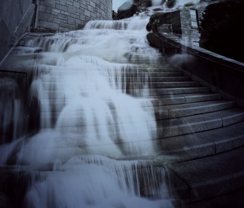 There’s a waterfall near the keep, splashing down into a river that skirts the base of a spur bordering the plateau, then it tumbles further down to flood the road. Closer inspection revealed the watercourse obscured a forgotten staircase leading up from the road, carved into the side of the mountain. Although flooded, the ancient stair is still marked with the stone symbol of the bear claw clan.