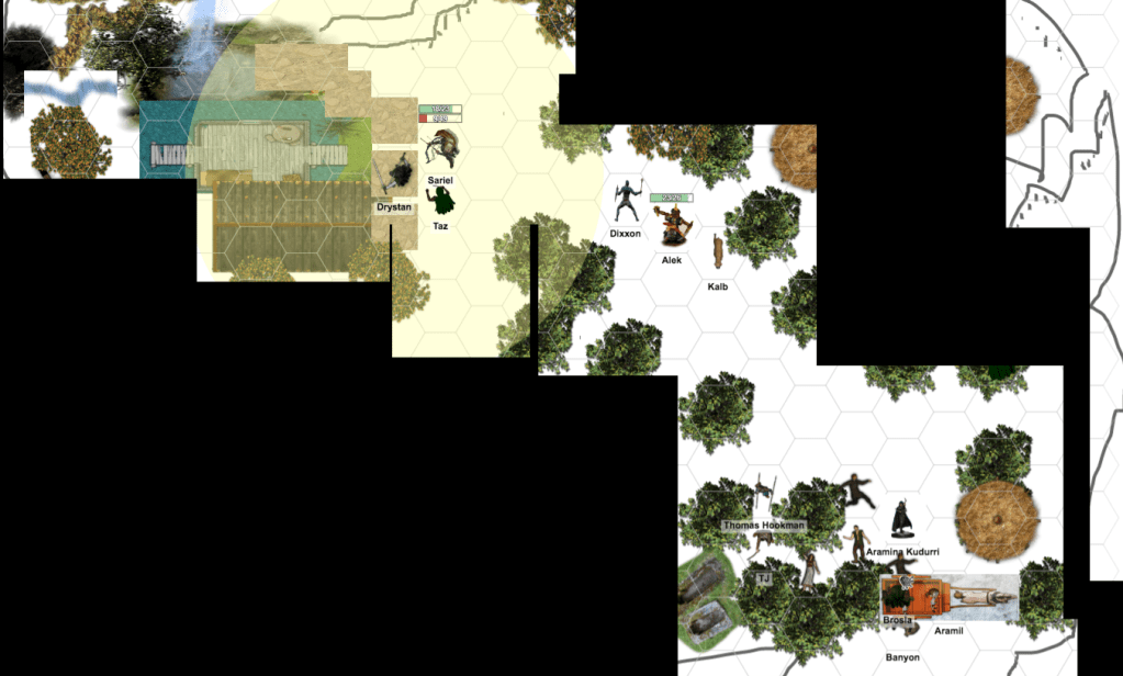We can also move our own characters around the provided map — see below. (The blacked-out parts are areas our characters haven’t seen yet.)