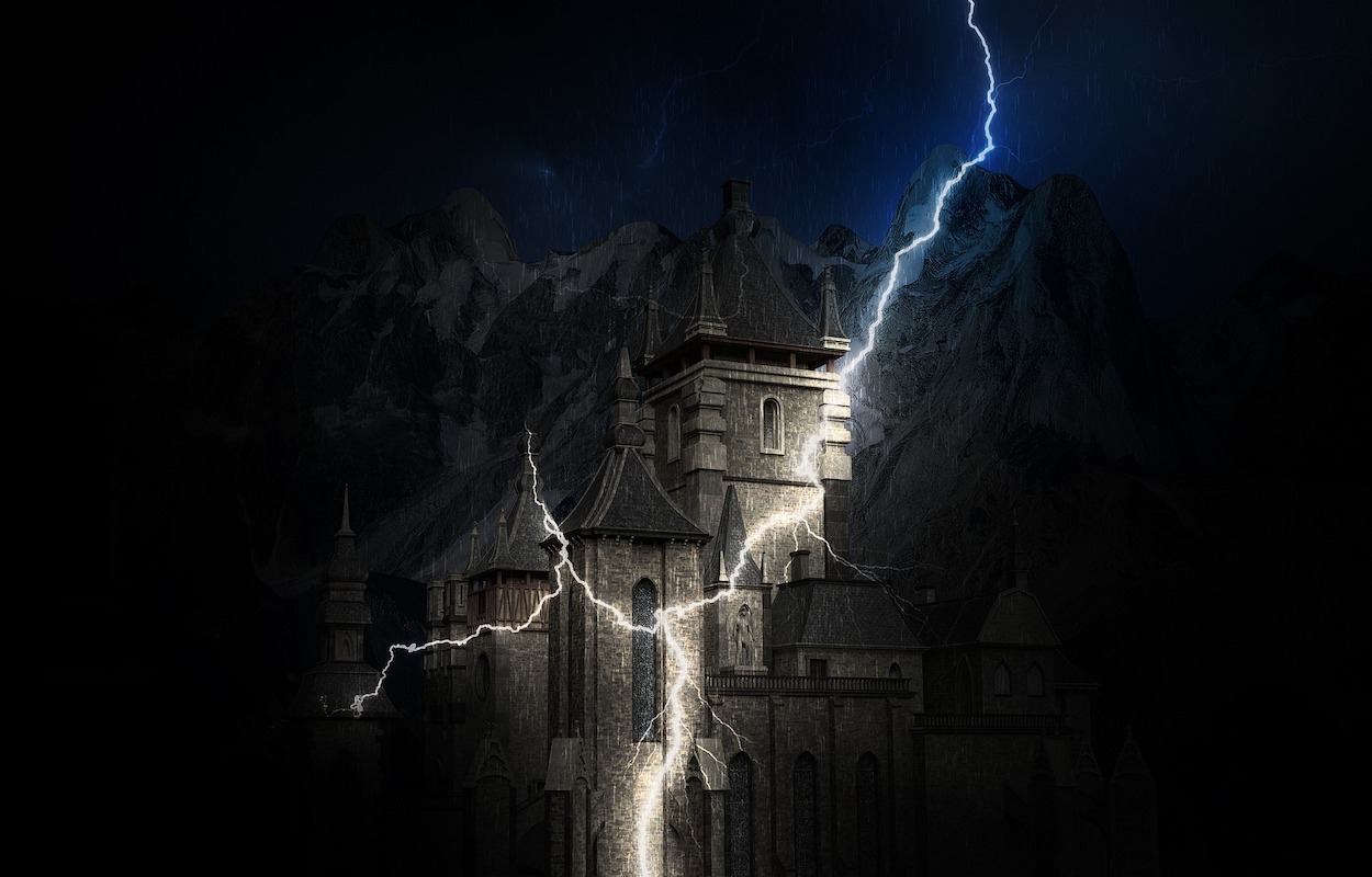 We took stock of our surroundings. Beyond these third-level barracks stretched a wide terrace, part of the roof of the second level of the keep, arrayed with catapults and ballista. A storm raged outside — yes, another one! — rain lashing against the windows, thunder and lightning clashing. With luck, the noise would cover our activities this night.